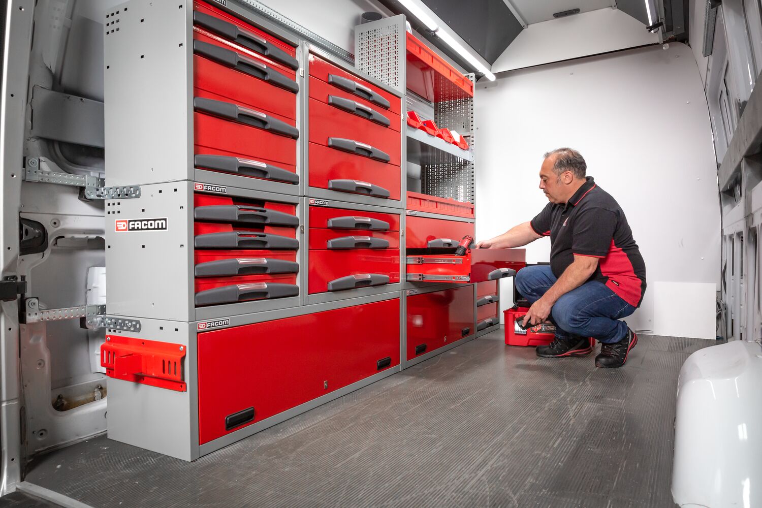 Whatever the size of your vehicle, you can equip it to make it a mobile workshop where everything is at hand and have your tools and equipment securely stored. MATRIX is the solution that allows you to have your tools perfectly organized when you are on the move and to locate them instantly for use once you reach the job.